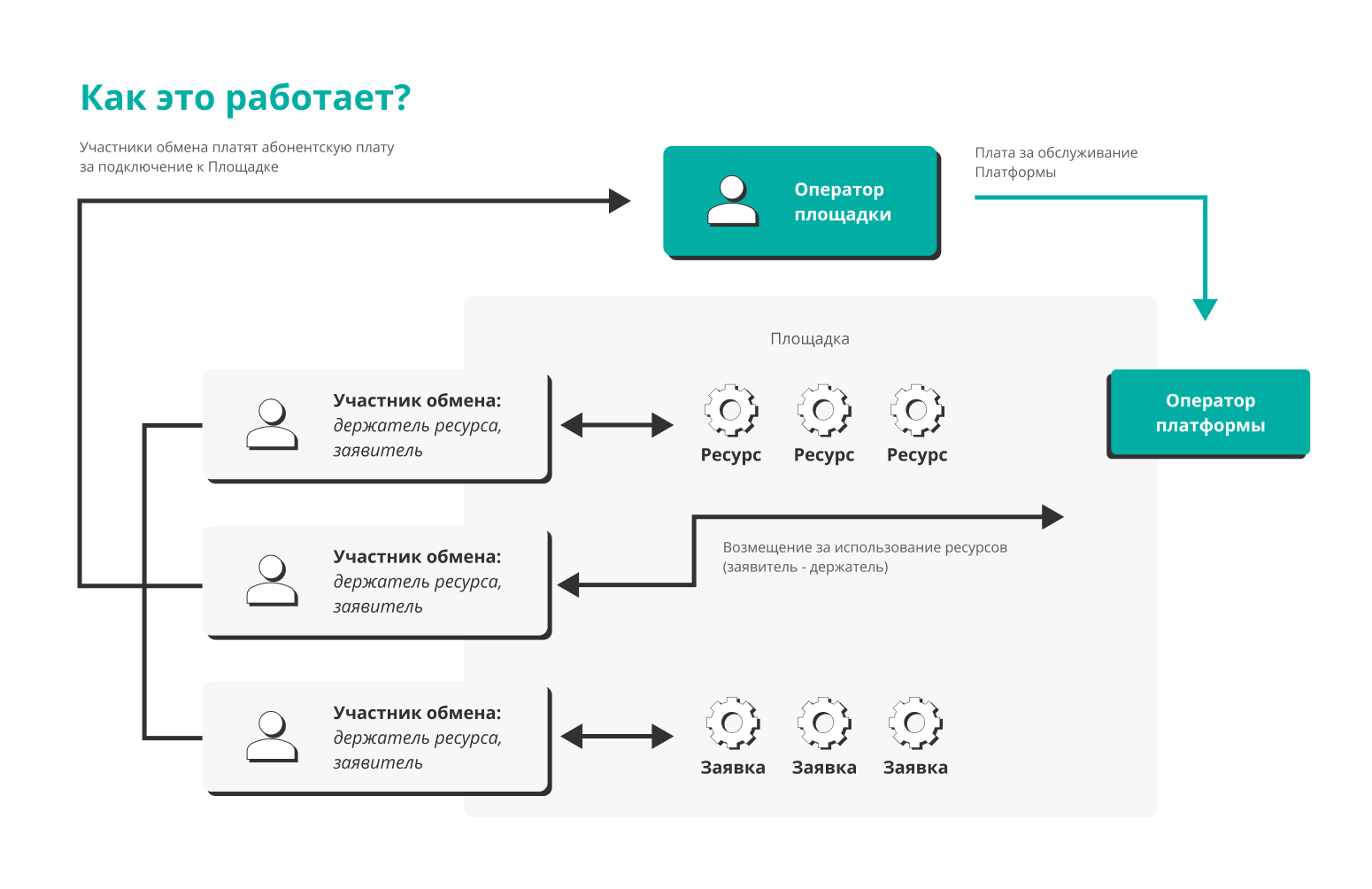 Мы берем управление и поддержку цифровой платформы, формулируем правила обмена ресурсами, упрощаем доступ к ресурсами для дружественных компаний, оптимизируем использование ресурсов.